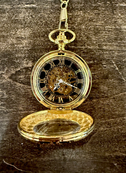 Winding Pocket Watch Non-Vintage Embossed Gold Coloured with Hinged Cover with Embossed Border