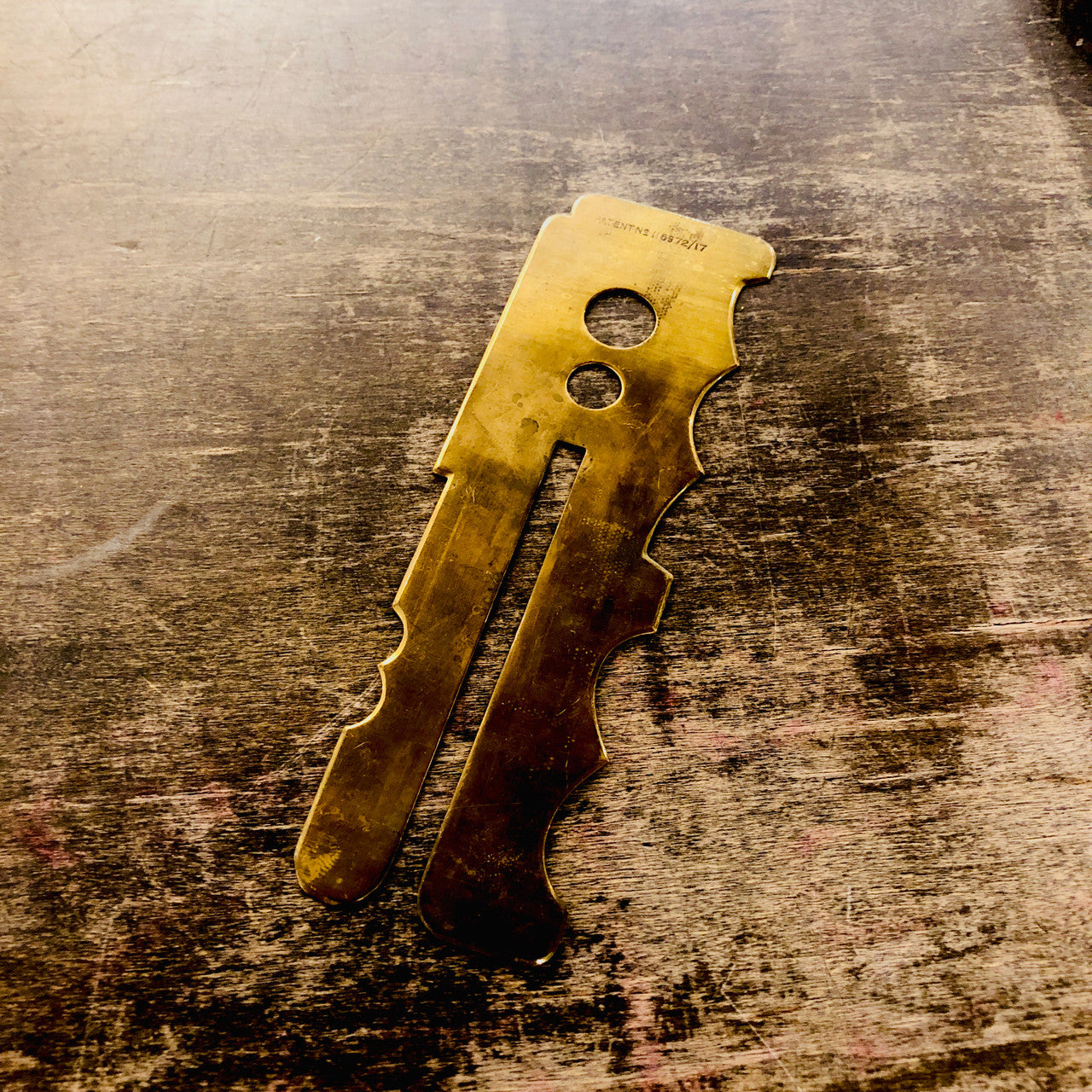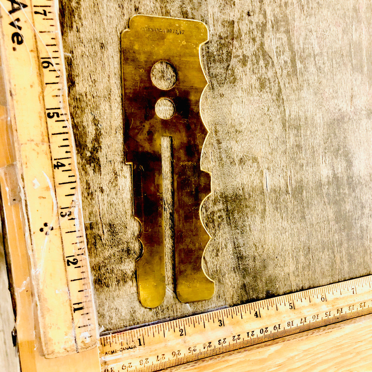 A vintage flat brass metal Officer's Button Polishing tool or stick, from the British Army, circa 1940s, WW II.