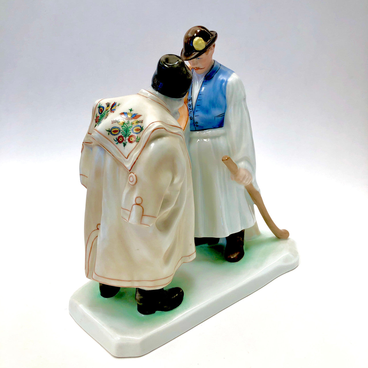 Herend, 5506, Figurine, Two Men, Gentlemen, Farewell, Handshake, Father and Son, Hungary, Porcelain, Vintage, Mid-Century,