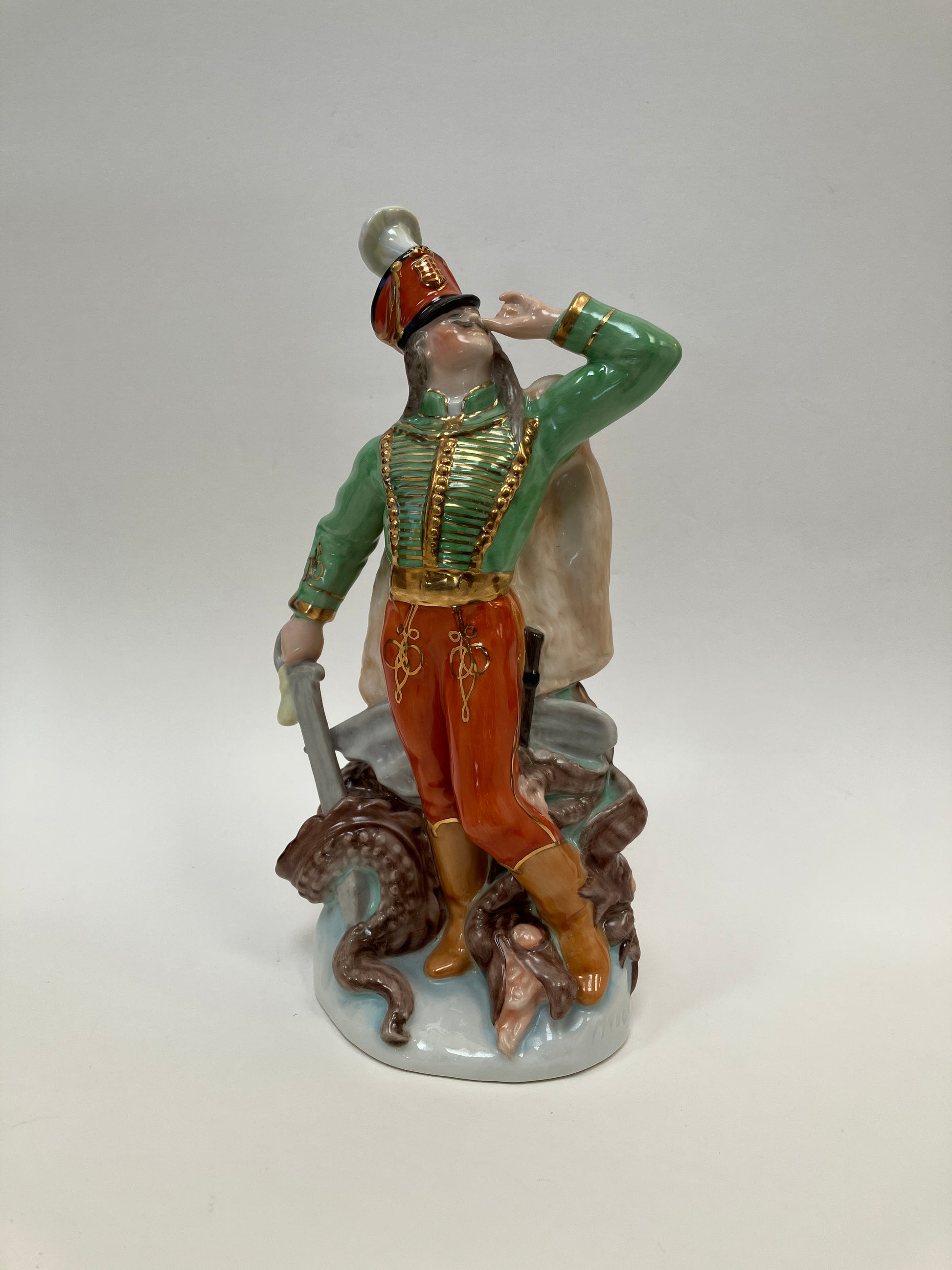 Herend, St George and the Dragon, Hungarian Hussar with Defeated Two Headed Dragon, Figurine, Porcelain