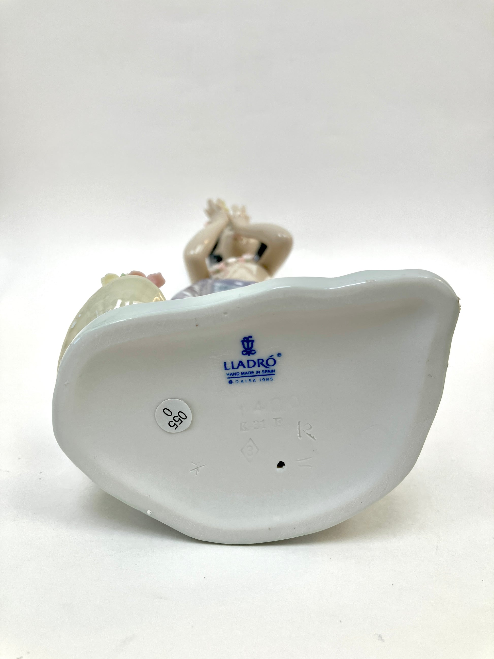 A rare and gorgeous pastel hued porcelain figurine from Lladro of Spain in a gloss glazed finish.