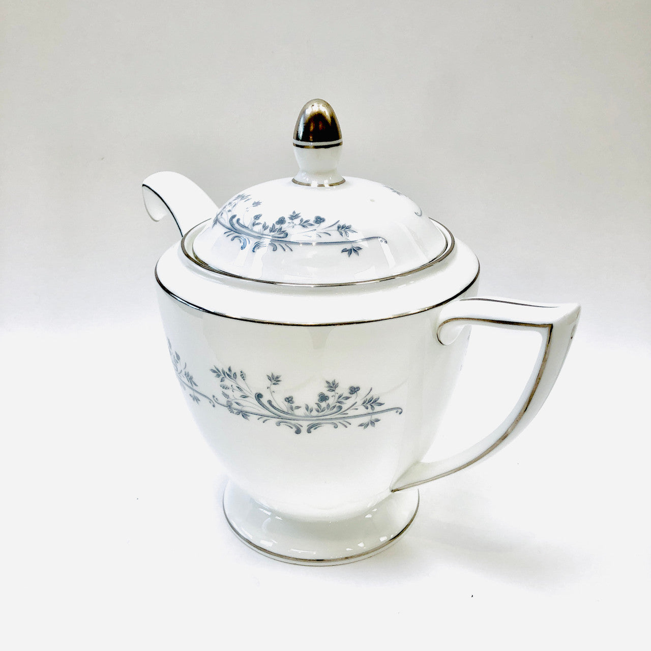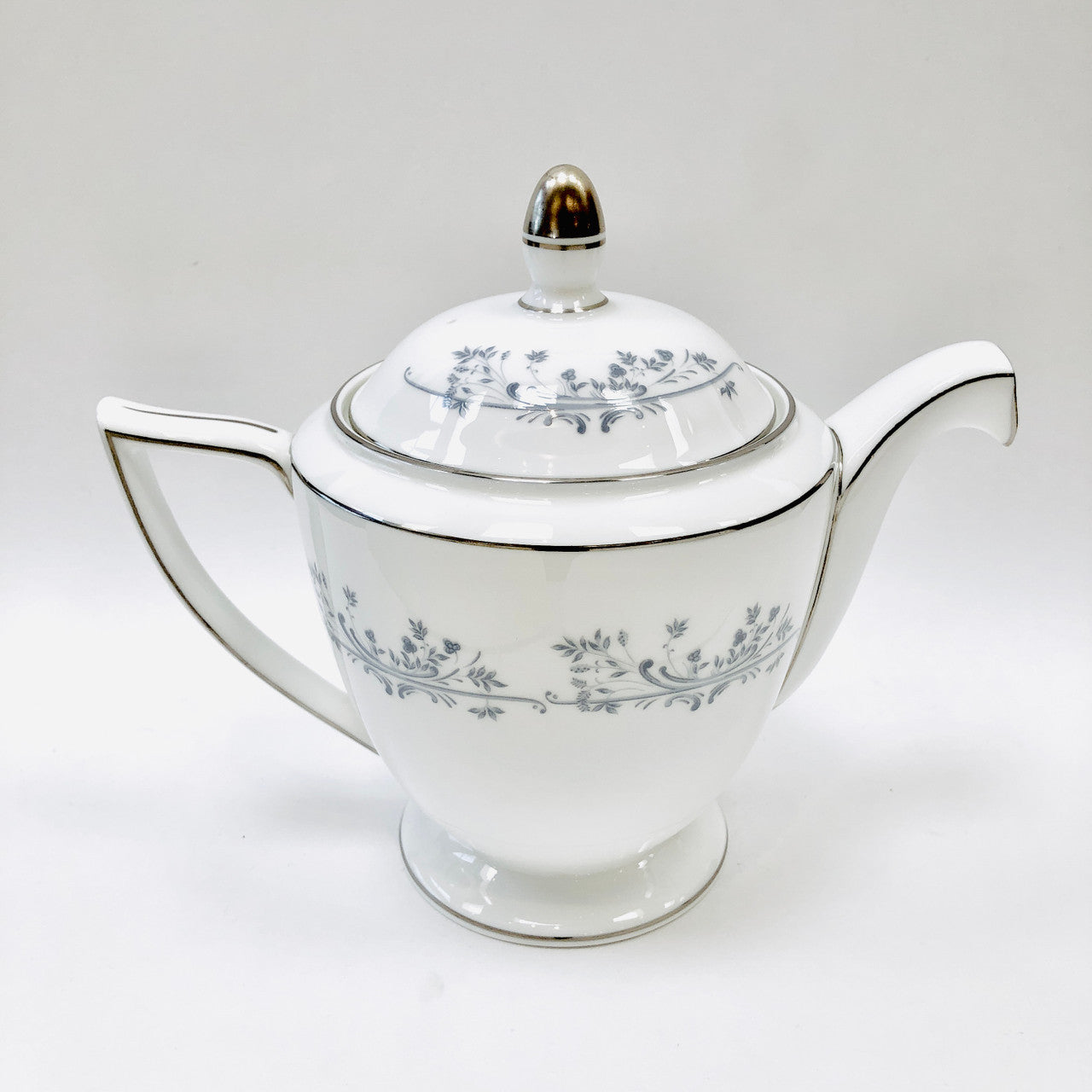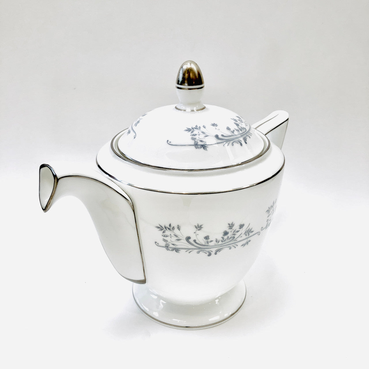 Minton Pandora Teapot, Tea Pot, Vintage, Floral, Grey, Platinum, Fine Bone China