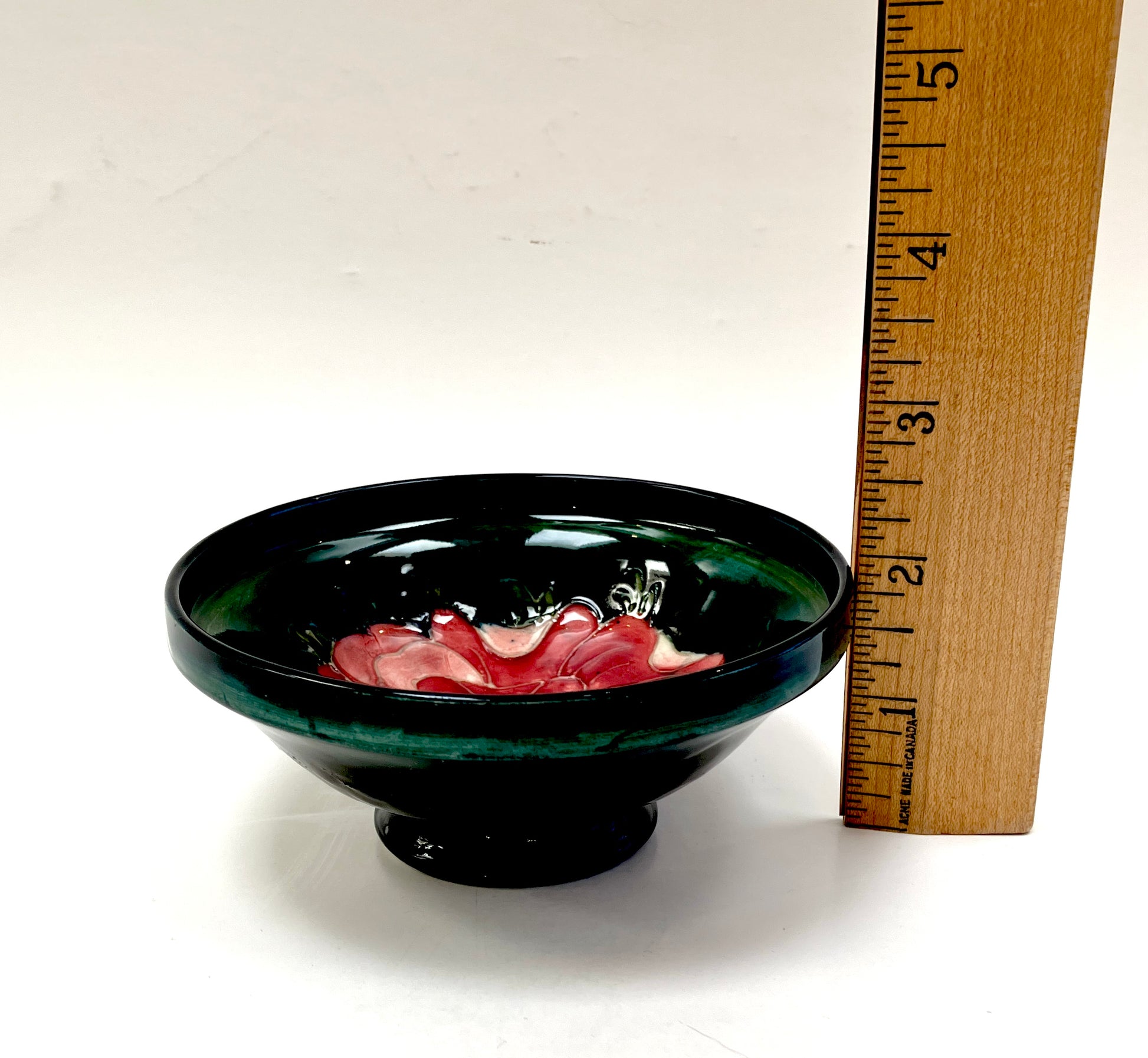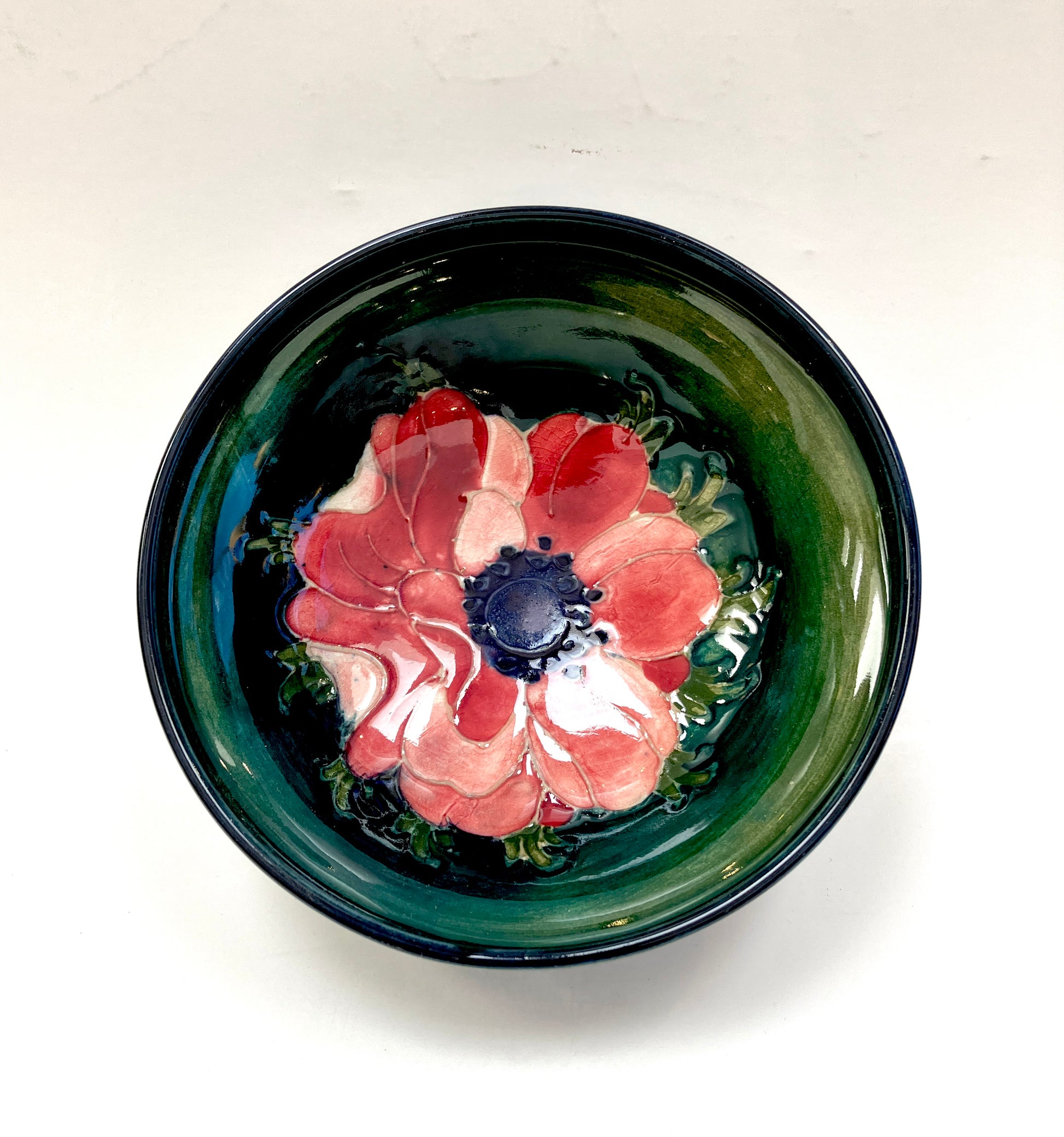 Moorcroft, Anemone, Bowl, Red Pink on Green Cobalt Blue, 1940s, Trinket Bowl