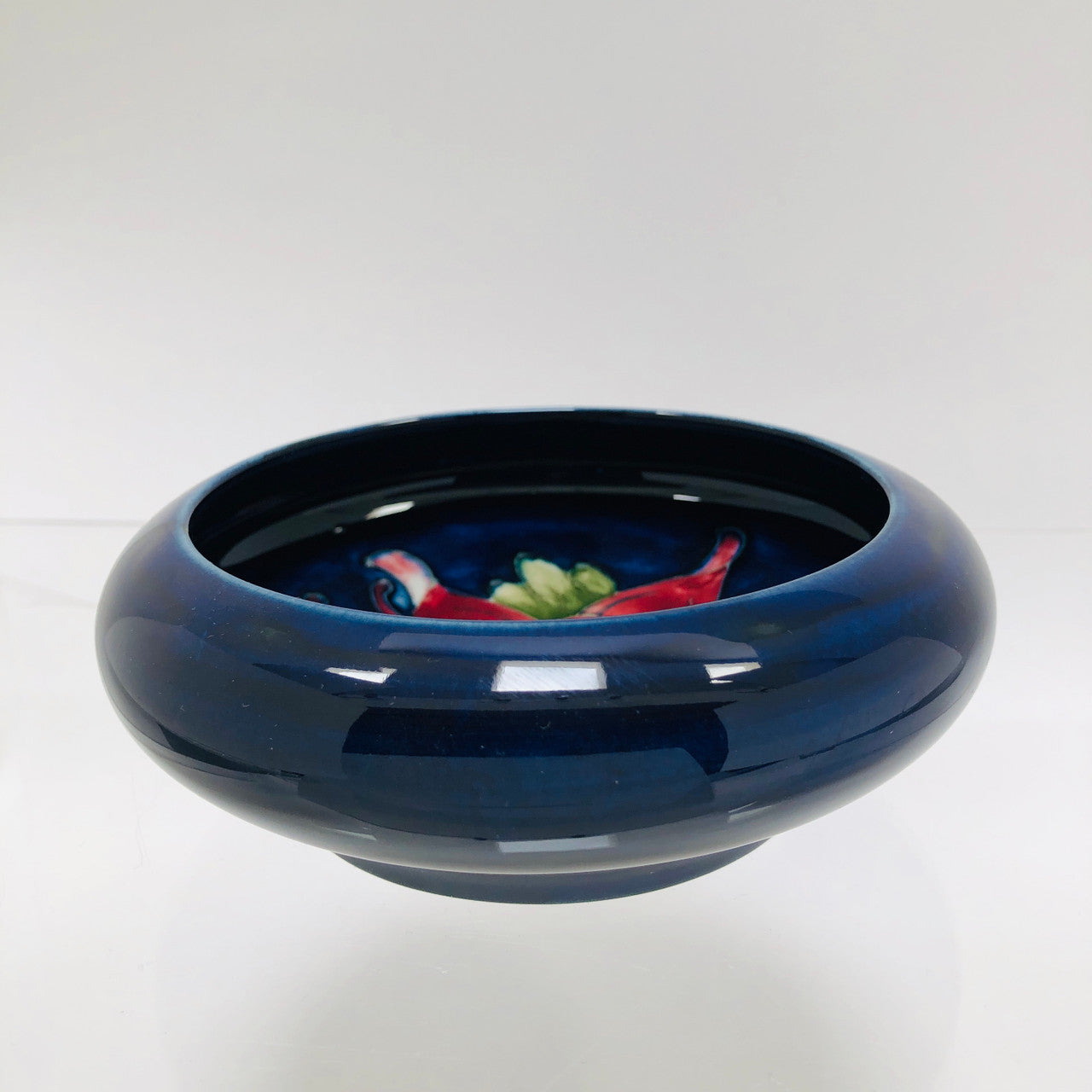 A truly vintage round deep blue Columbine Bowl from Moorcroft.