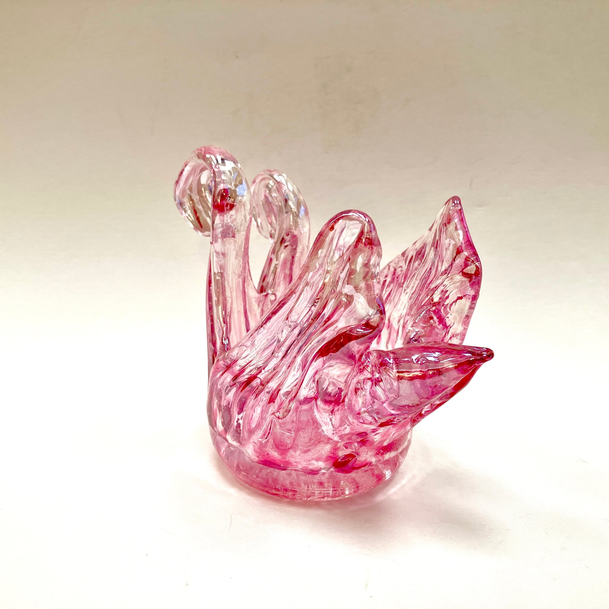 Pink, Two headed Swan, Vintage, Chantili, Chalet, Art Glass, Glass, Figurine, Figural bowl
