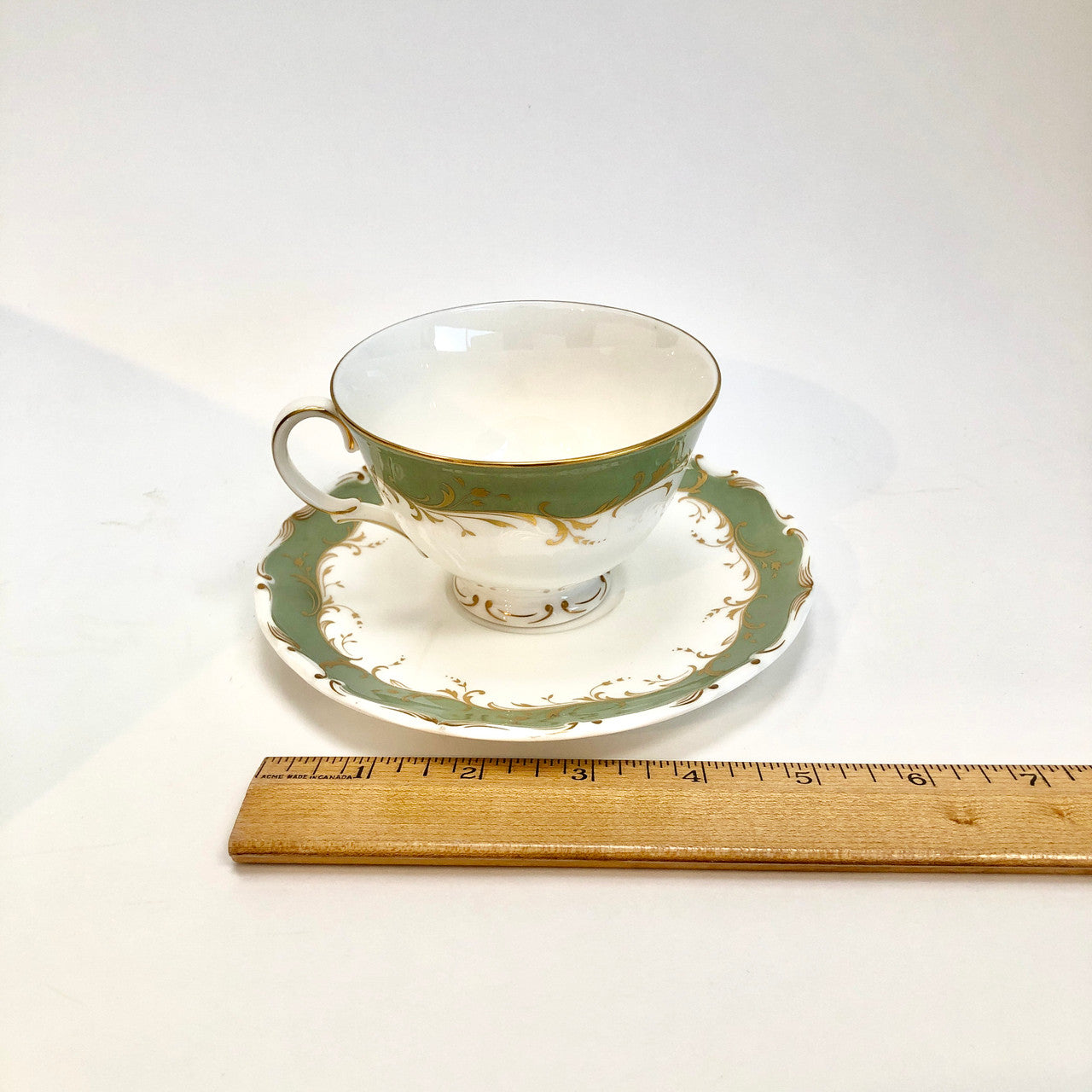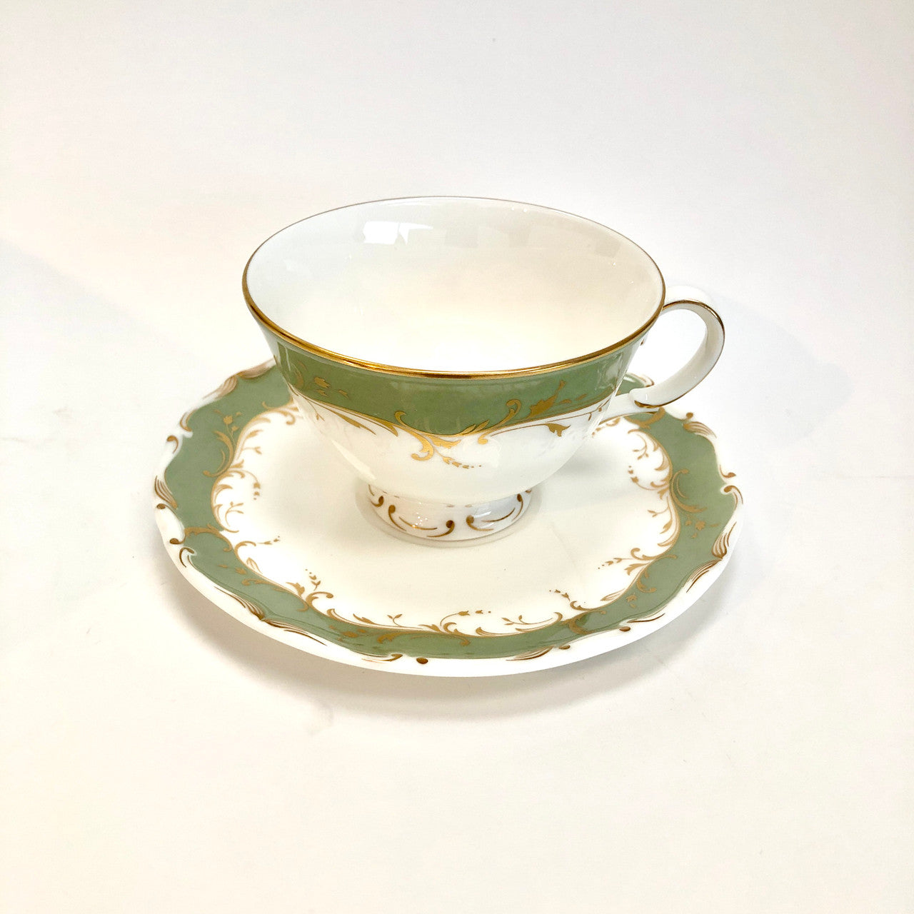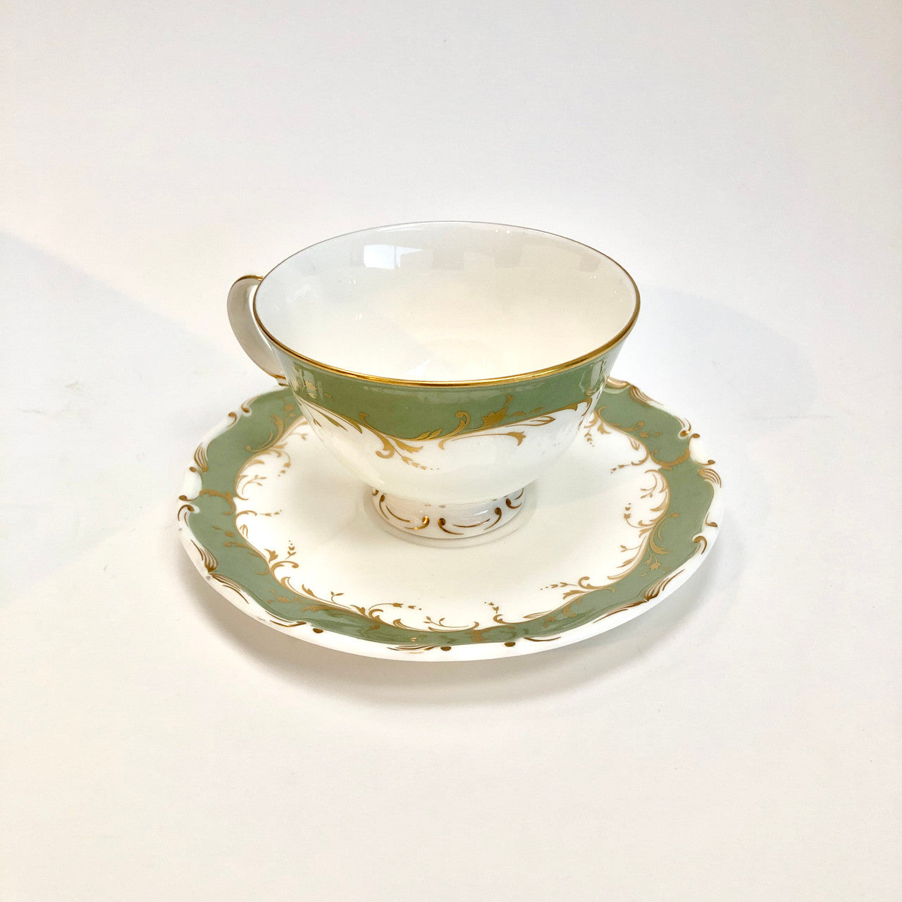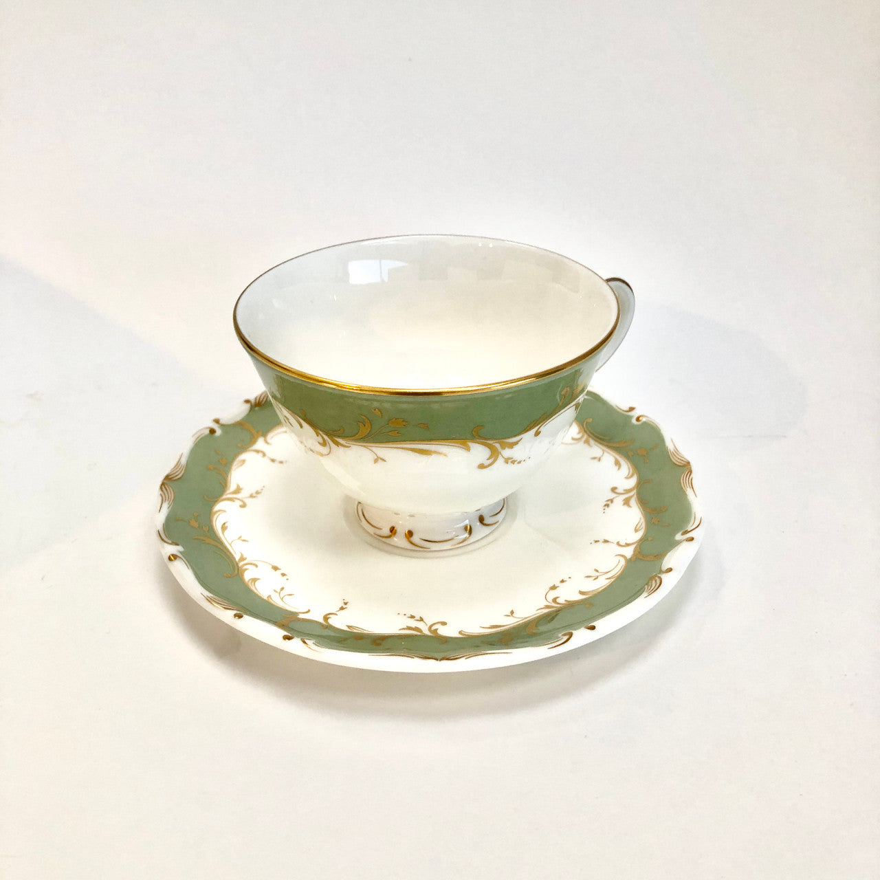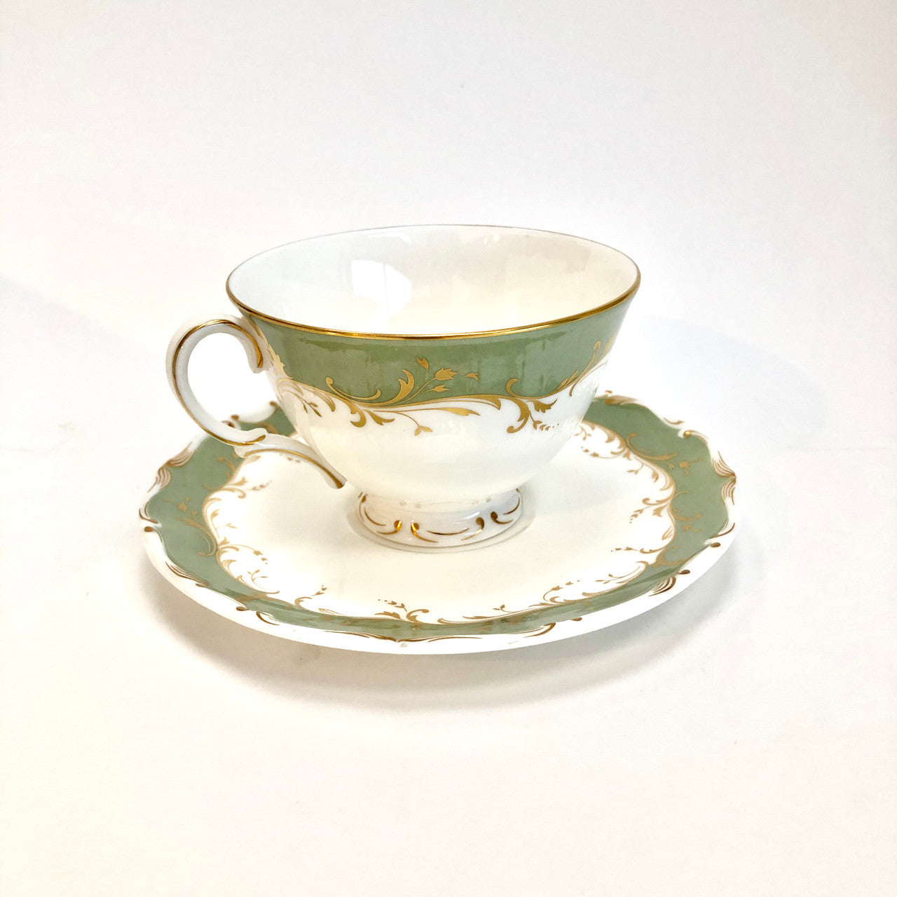 Royal Doulton, Fontainbleu, H 4987, Vintage, England, Green, Grey, Gold, Tea Cup, Cup, Saucer, Cup and Saucer, Fine, bone, China, Steampunk