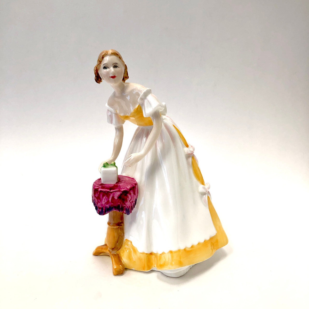 Royal Doulton, Happy Birthday, HN3095, HN 3095, Figurine, Vintage, England, Pauline Parsons, Lady, Yellow, Handpainted, Hand Painted