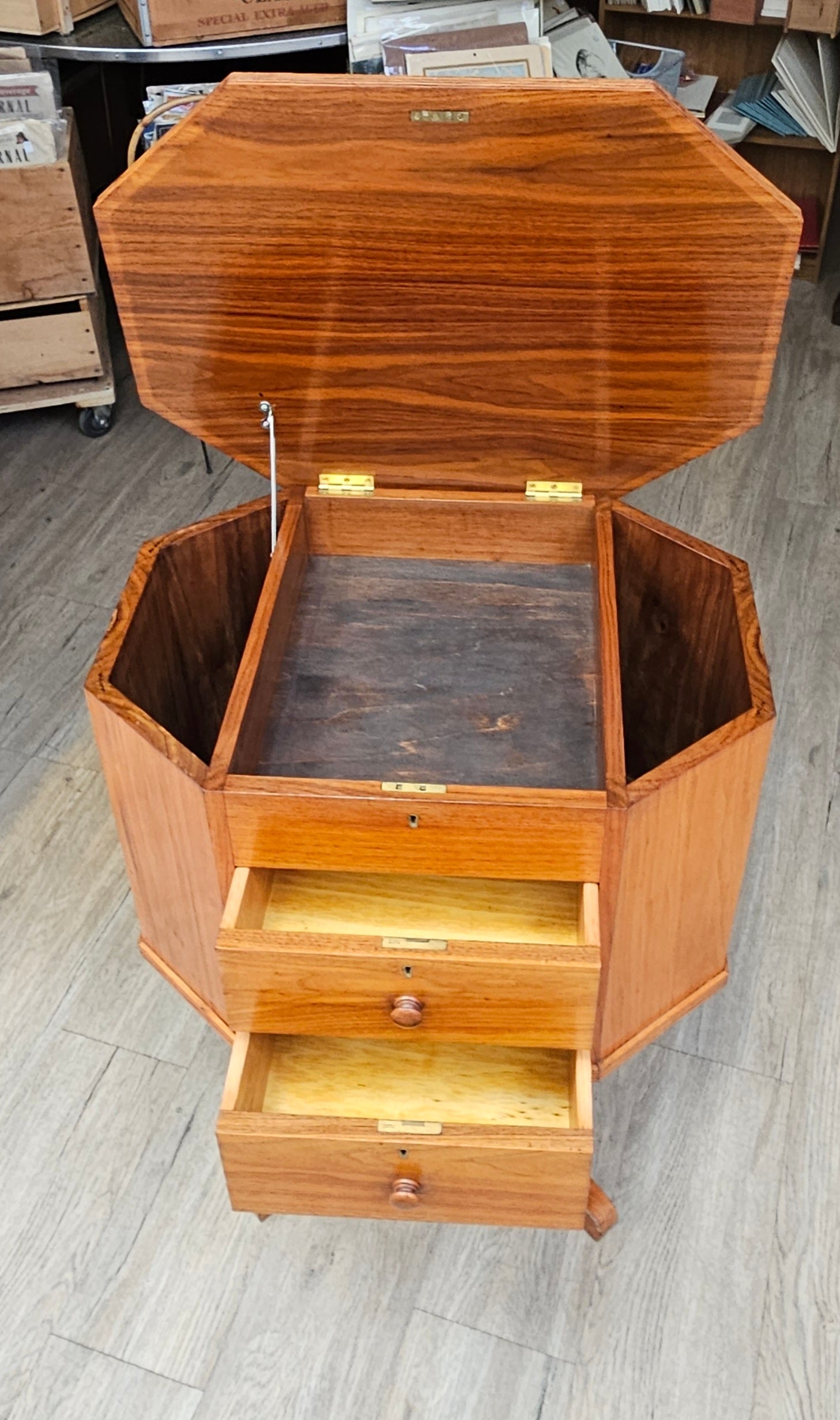 Large sewing cabinet, American Empire 1830s-1840s, octagonal, 3 feet (pedestal).