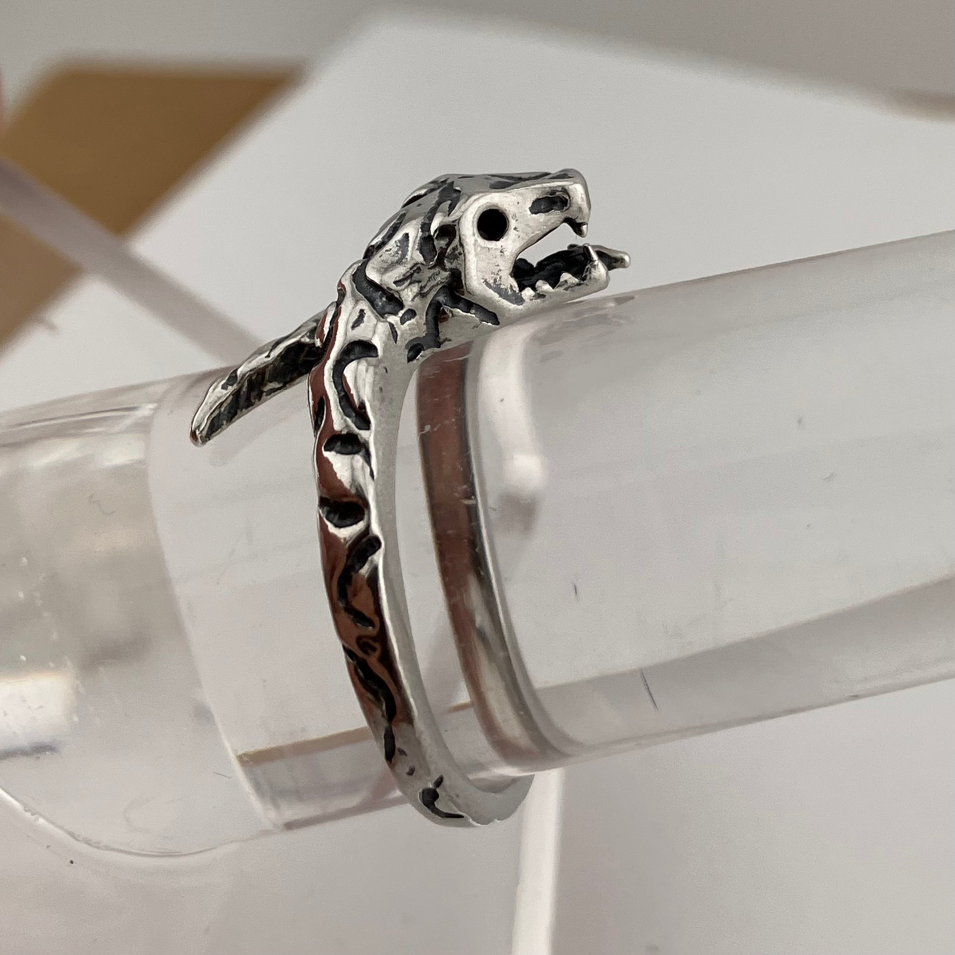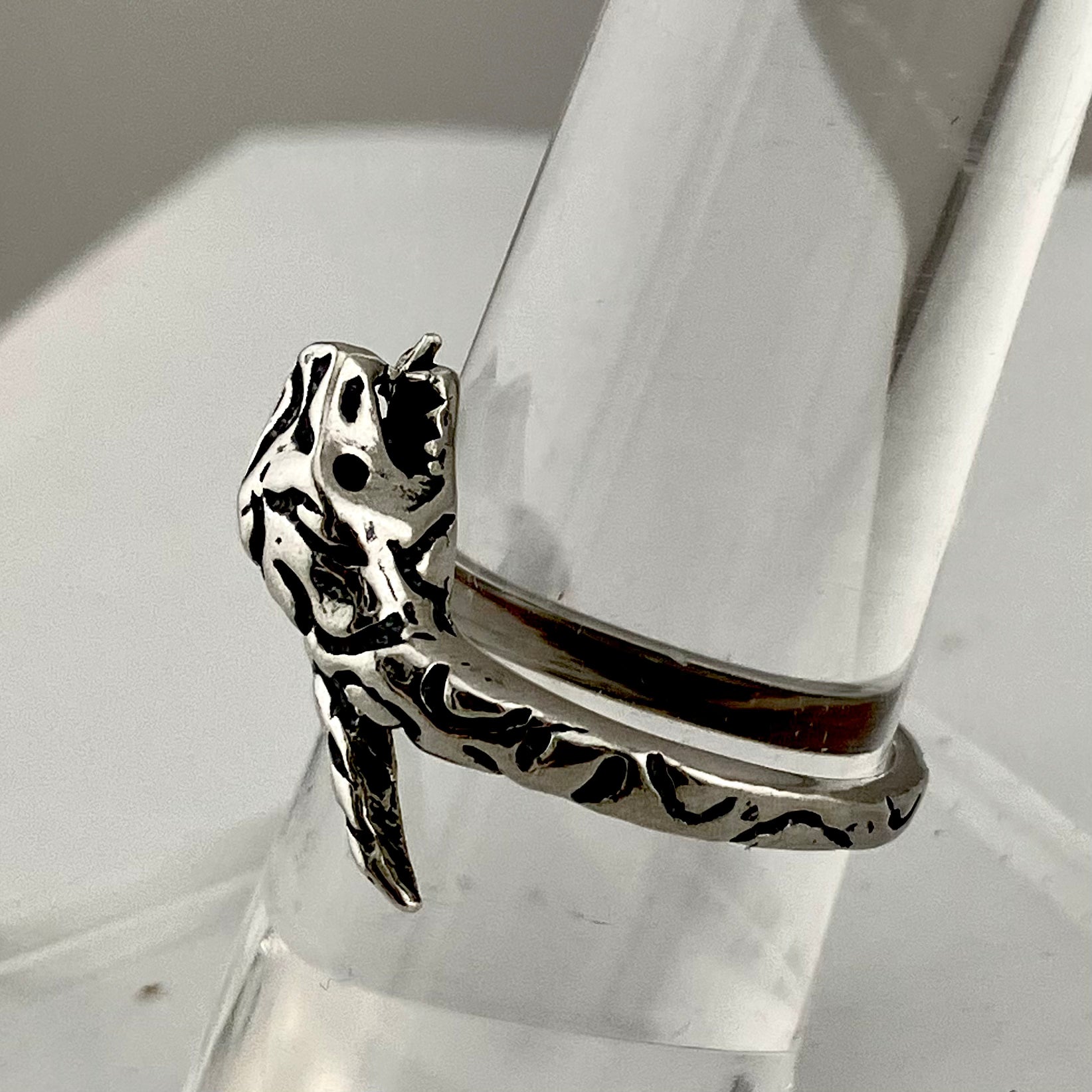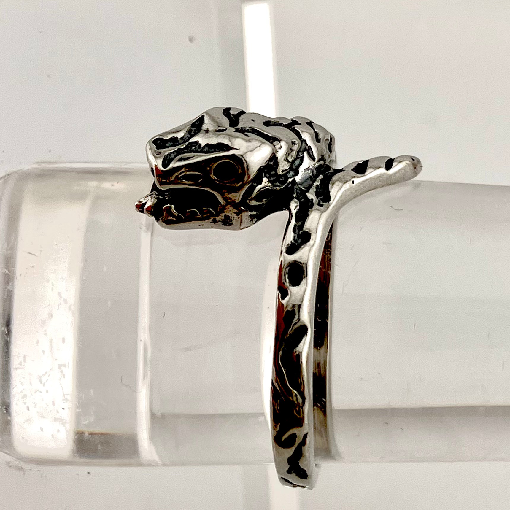 Sterling Silver Open Fanged Mouth Snake Ring.
