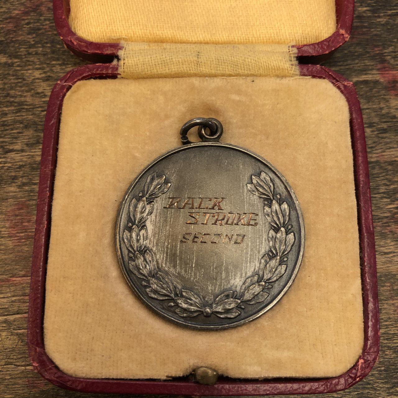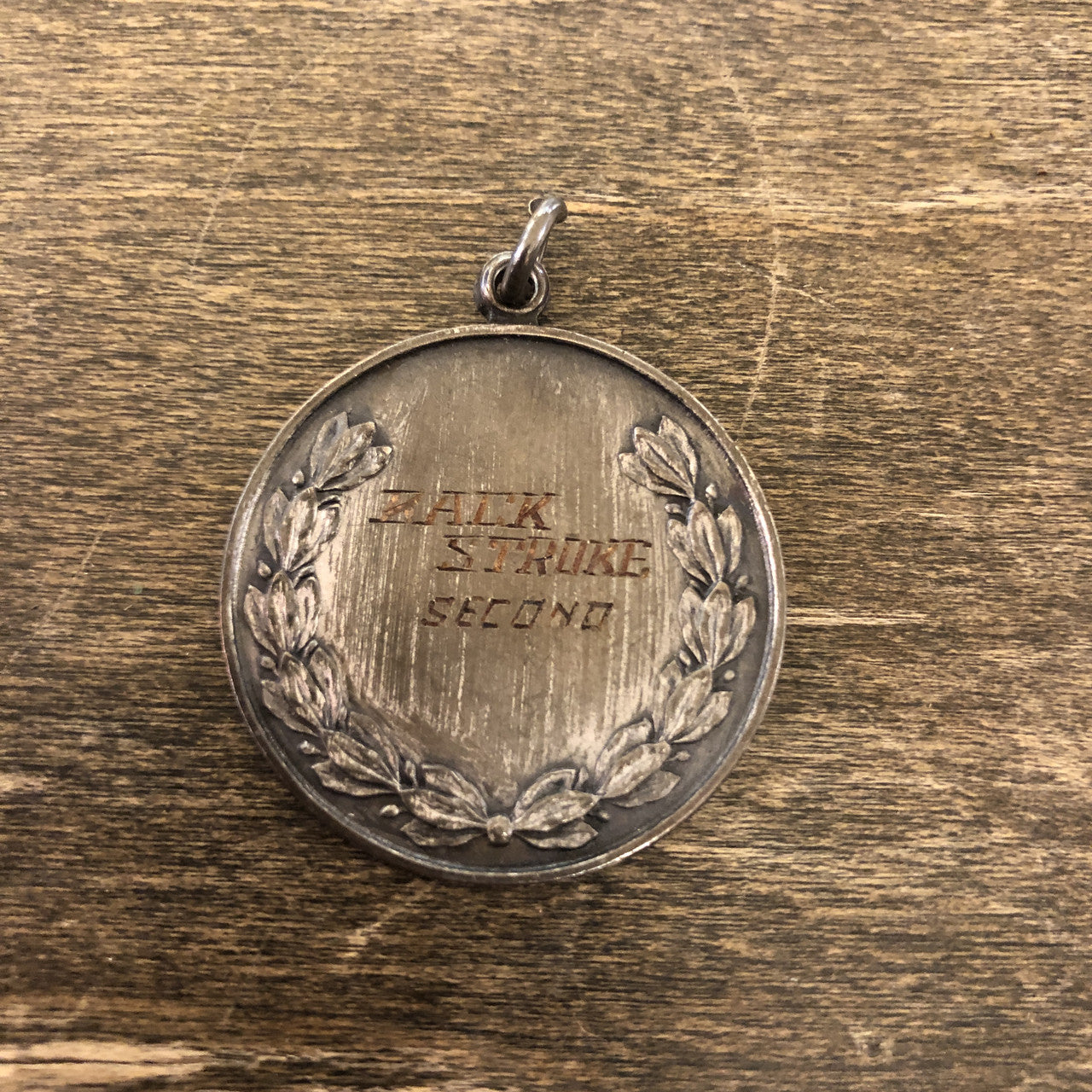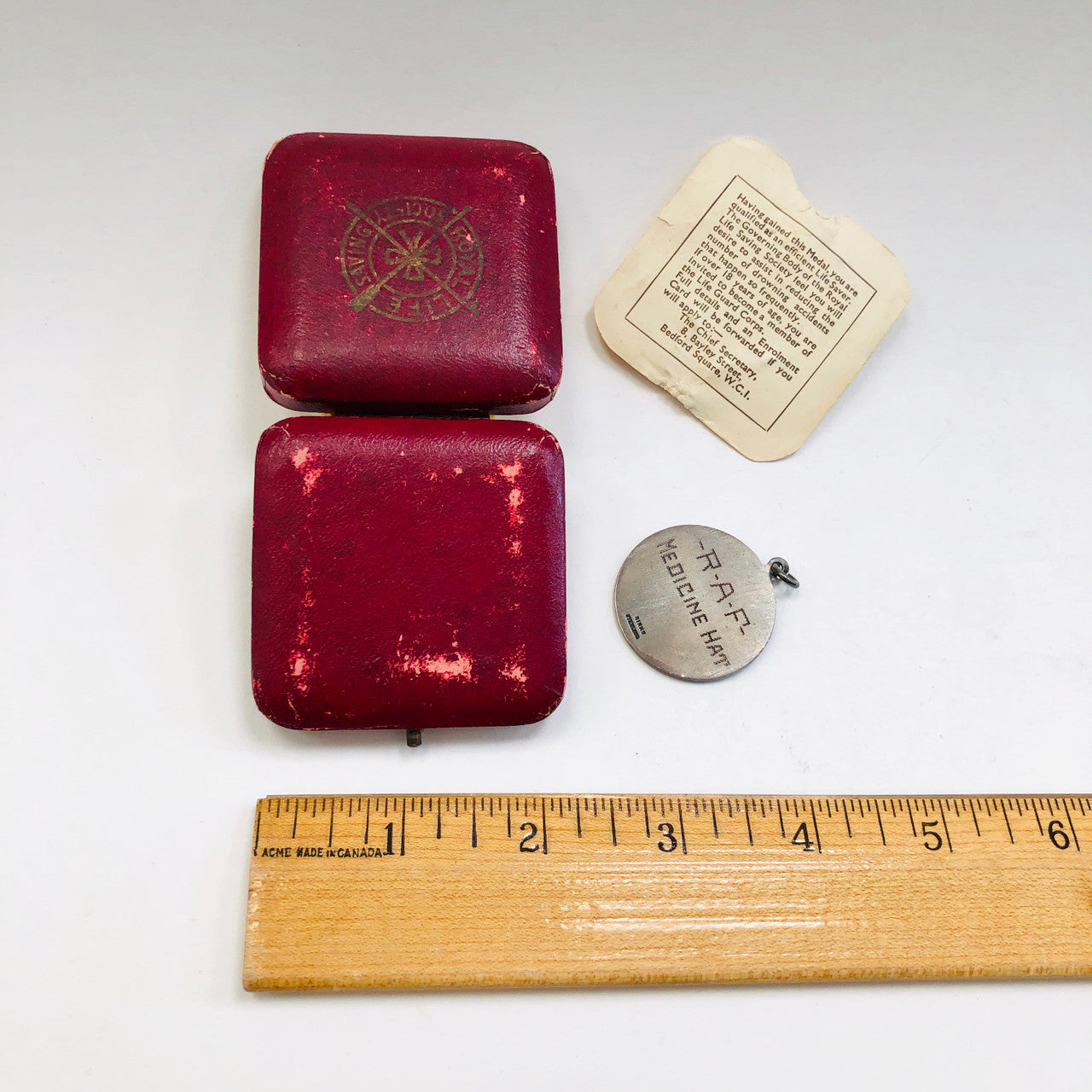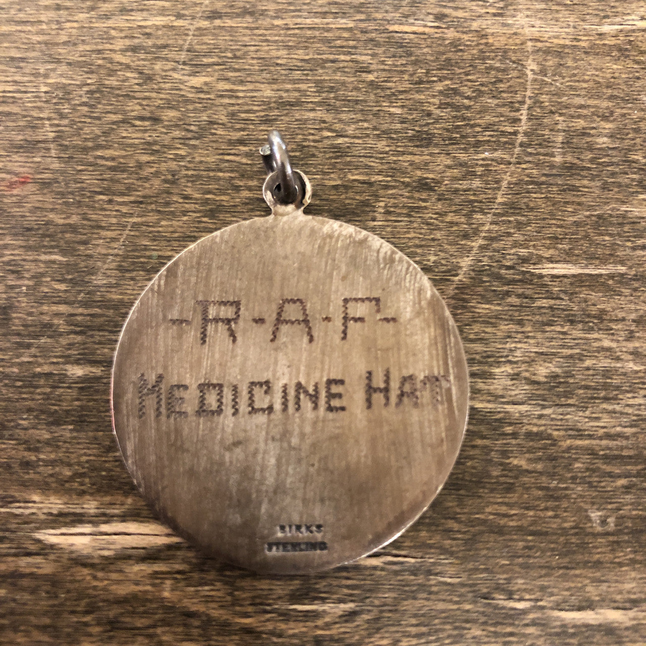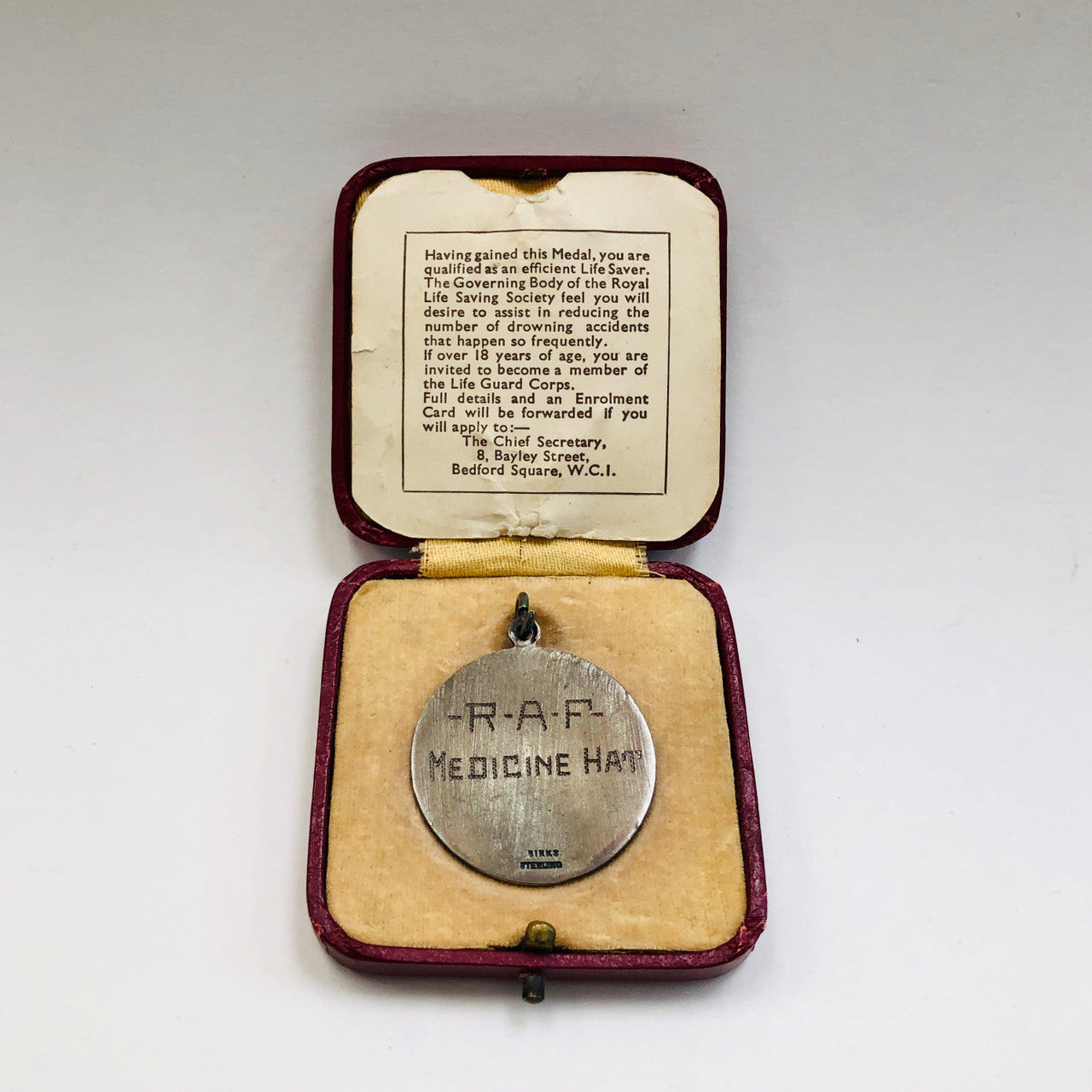 A round sterling silver embossed medal, 1 3/8" wide, Royal Life Saving Society, Royal Air Force, RAF Medicine Hat.