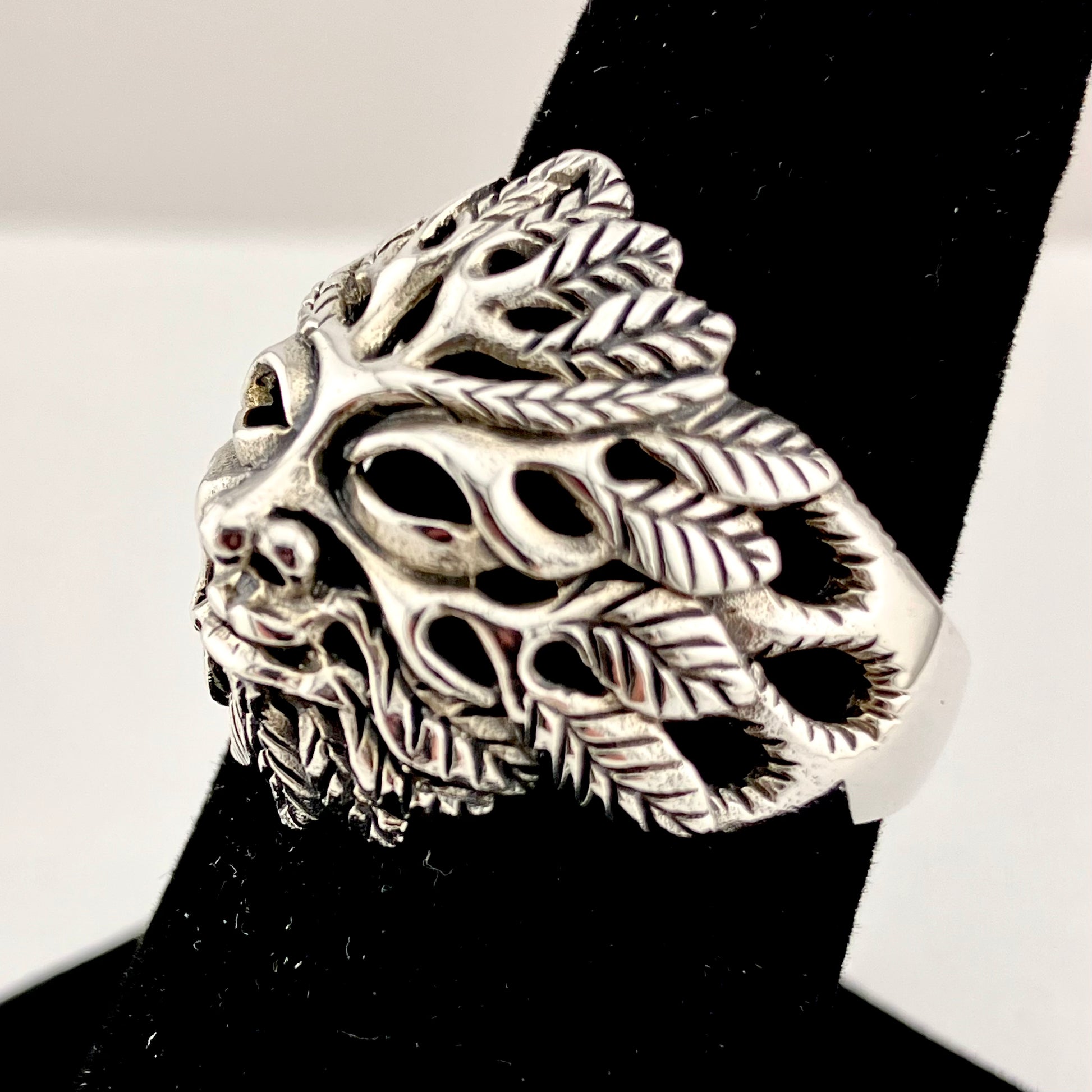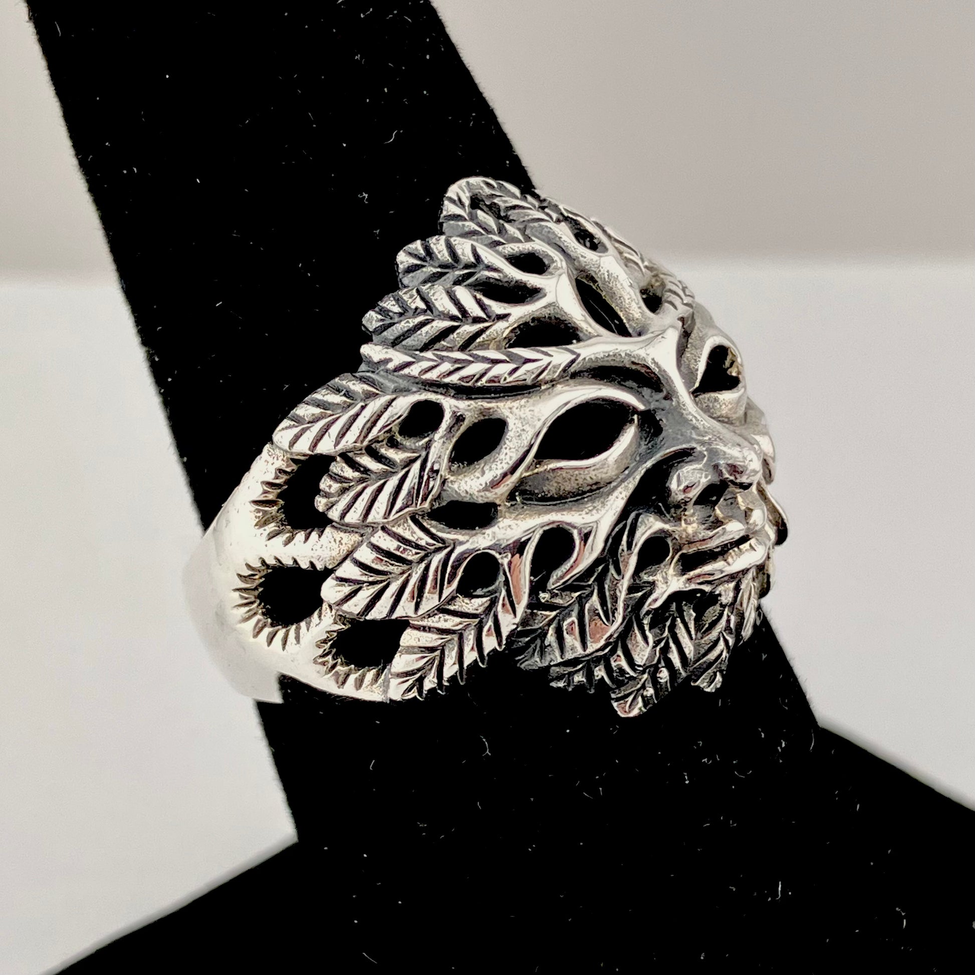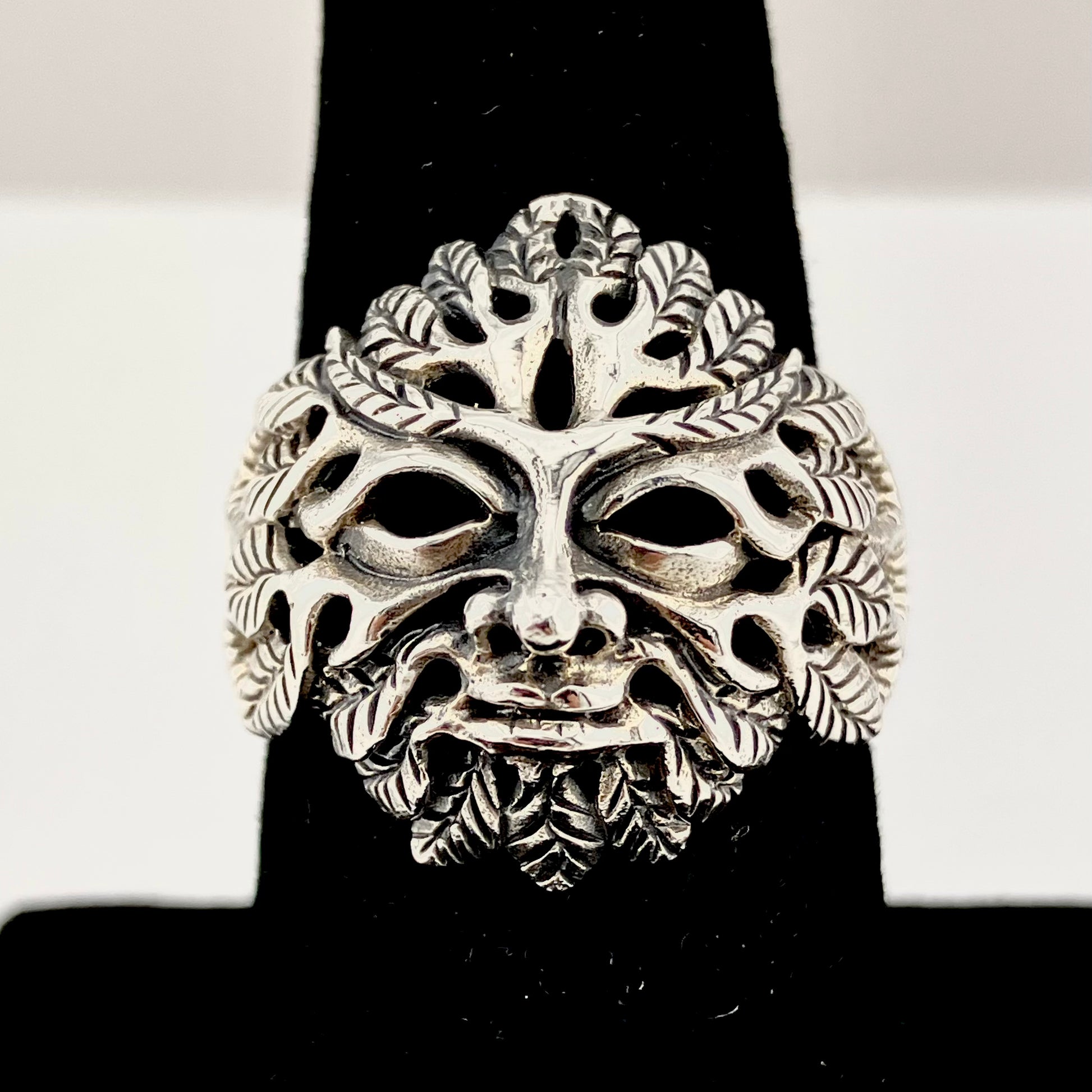 Sterling Silver Pierced Green Man Ring.