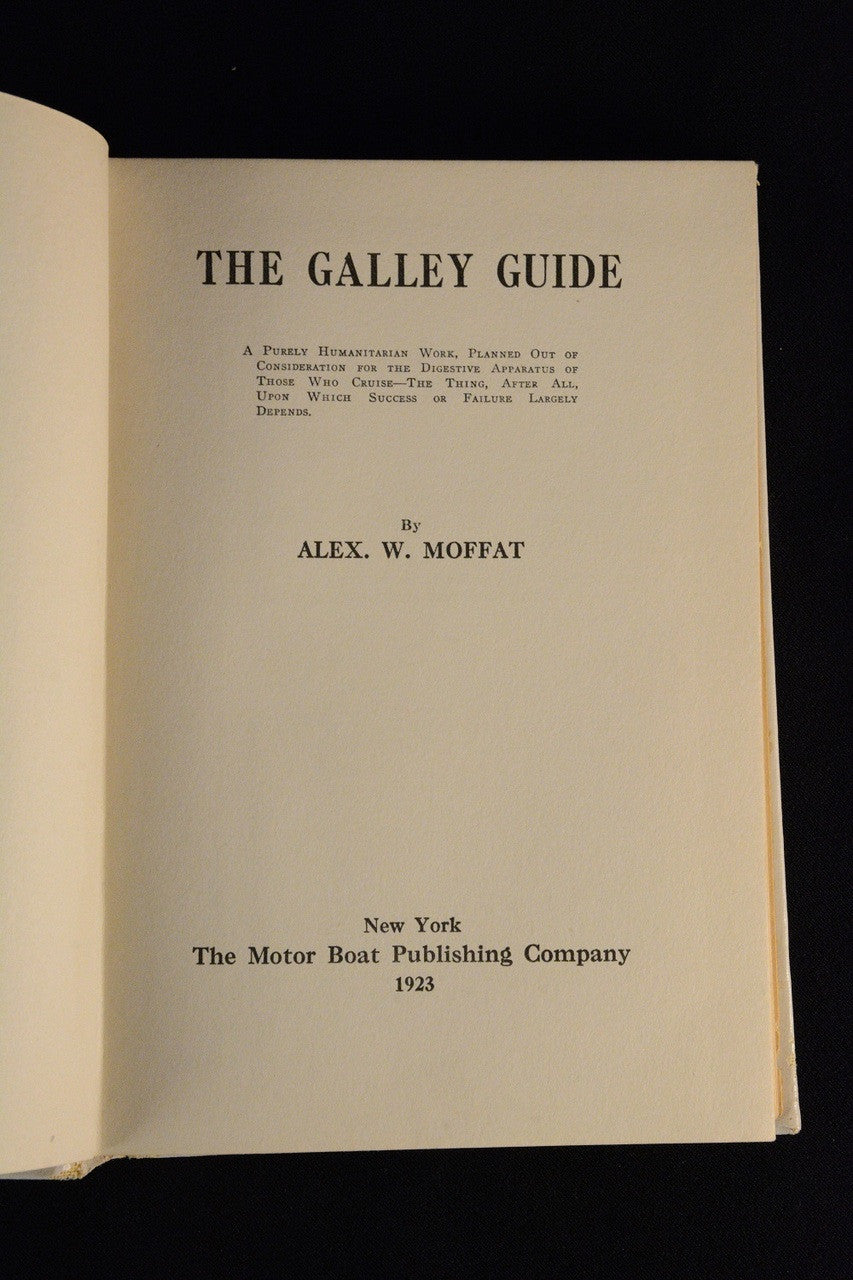 The full copyright title of this hard to find Moffat's Galley Guide by Alexander white is "The galley guide; a purely humanitarian work planned out of consideration for the digestive apparatus of those who cruise..."