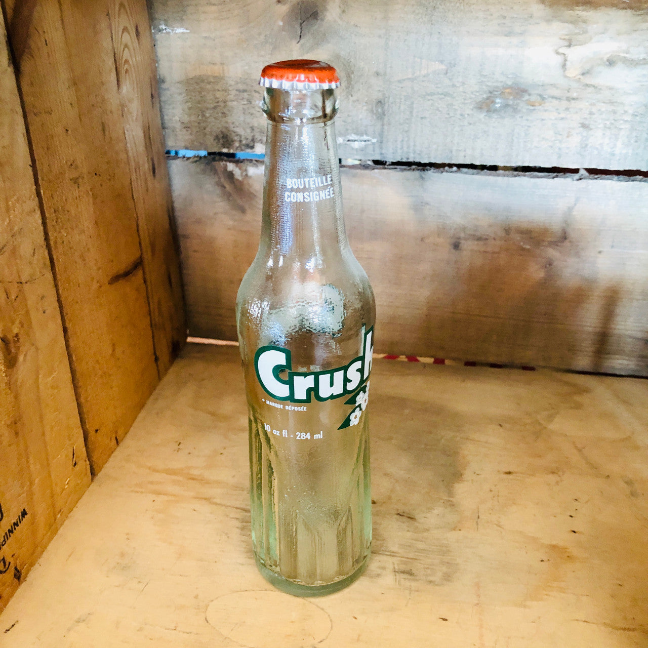 Vintage, Glass, bottle, Crush, 10 FL OZ, Green, White, Label, Bilingual English-French