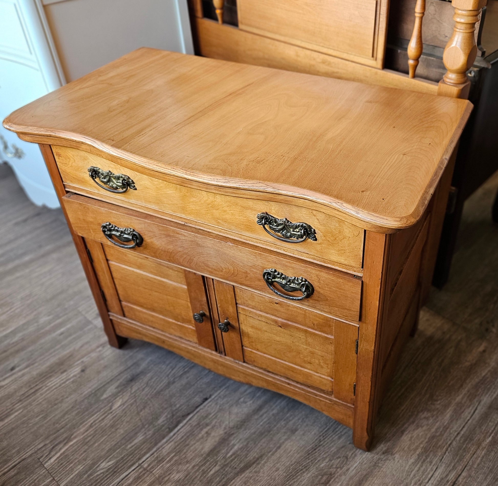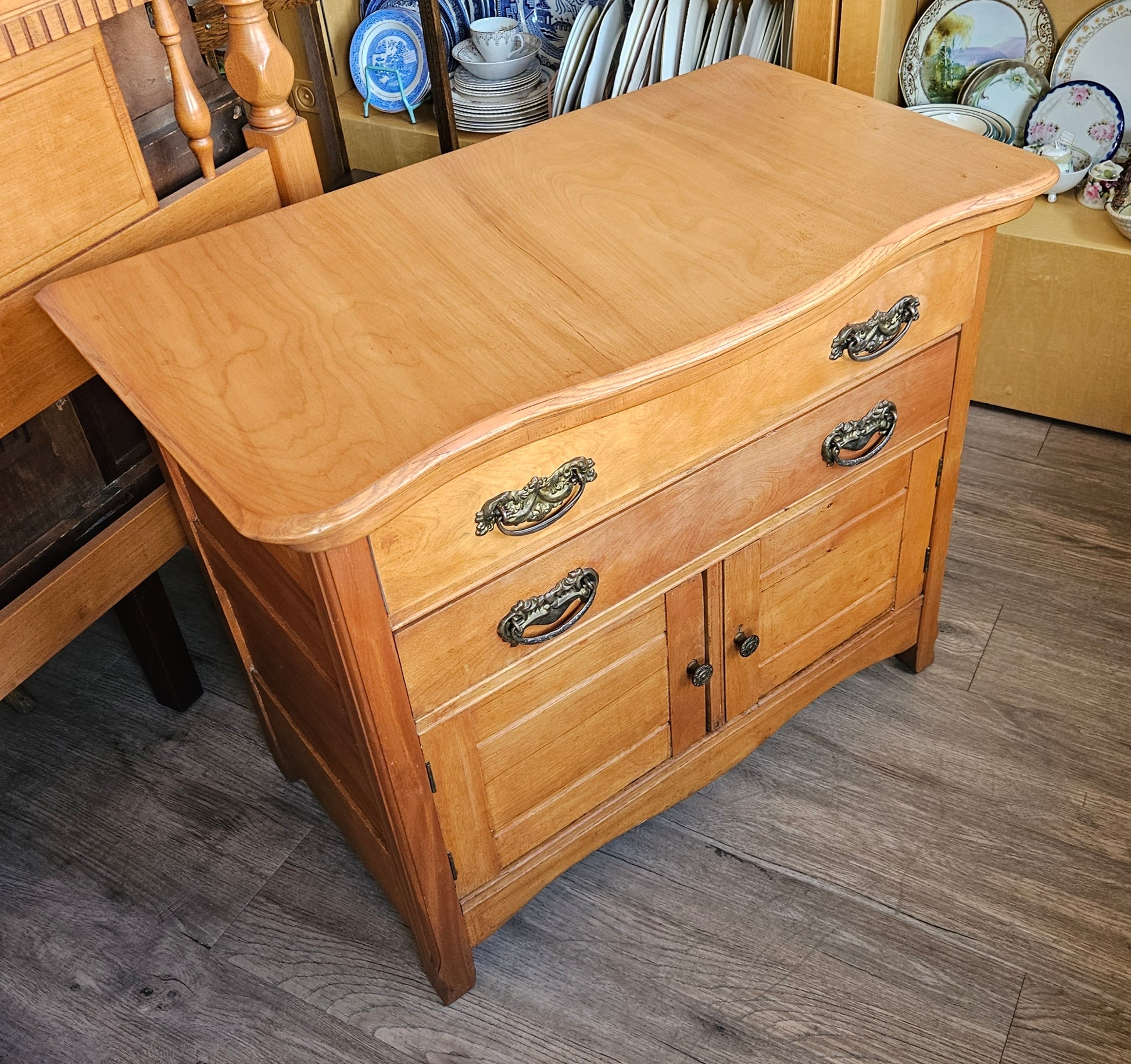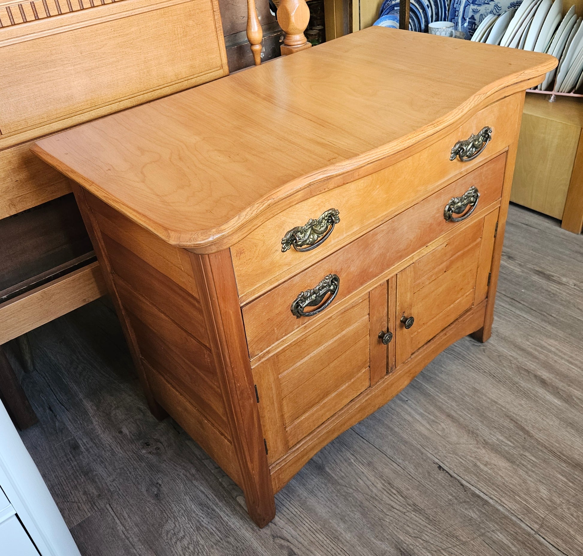 Maple washstand, 2 drawers plus cabinet below, vintage/antique, no mirror or towel rail.