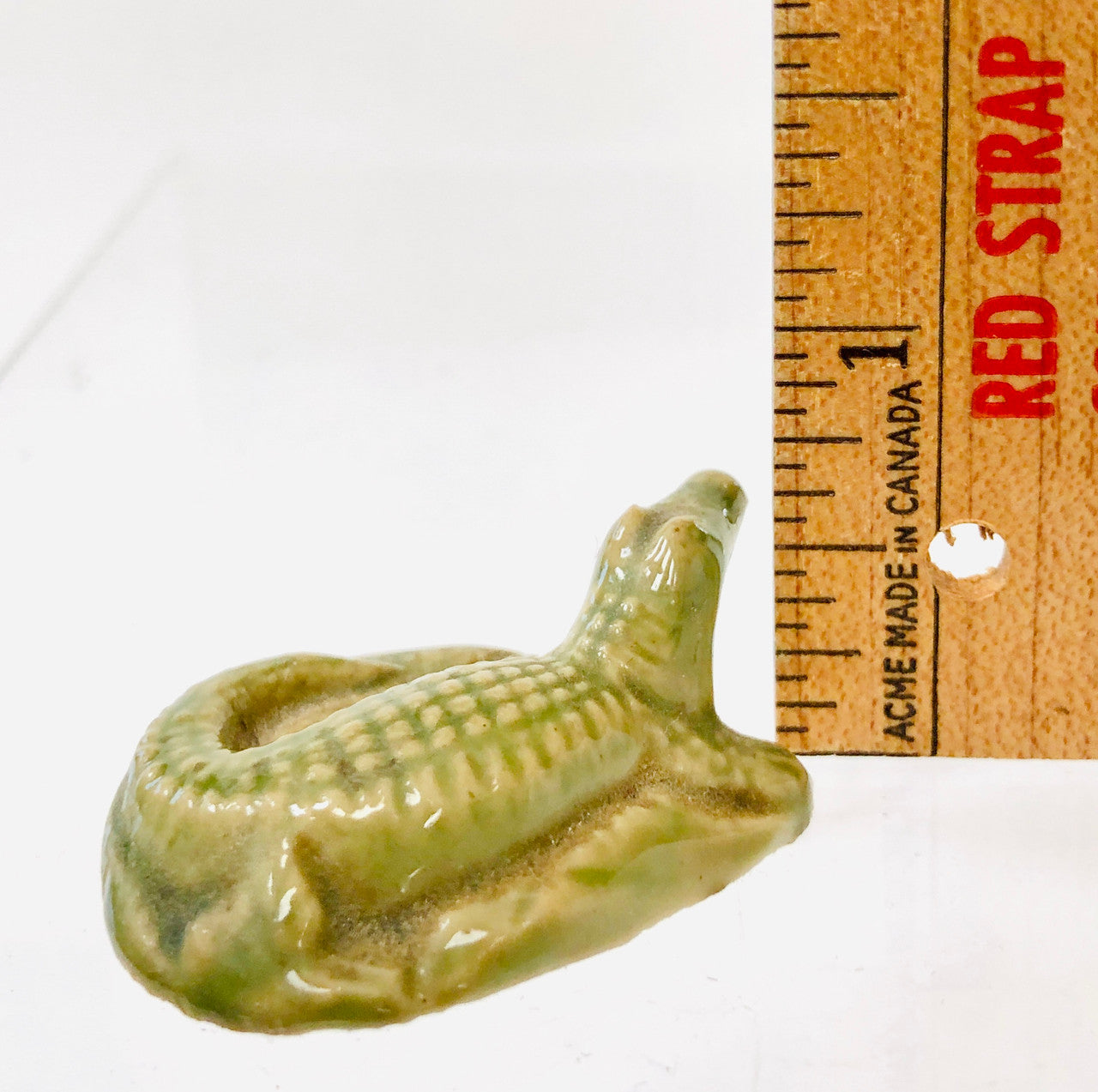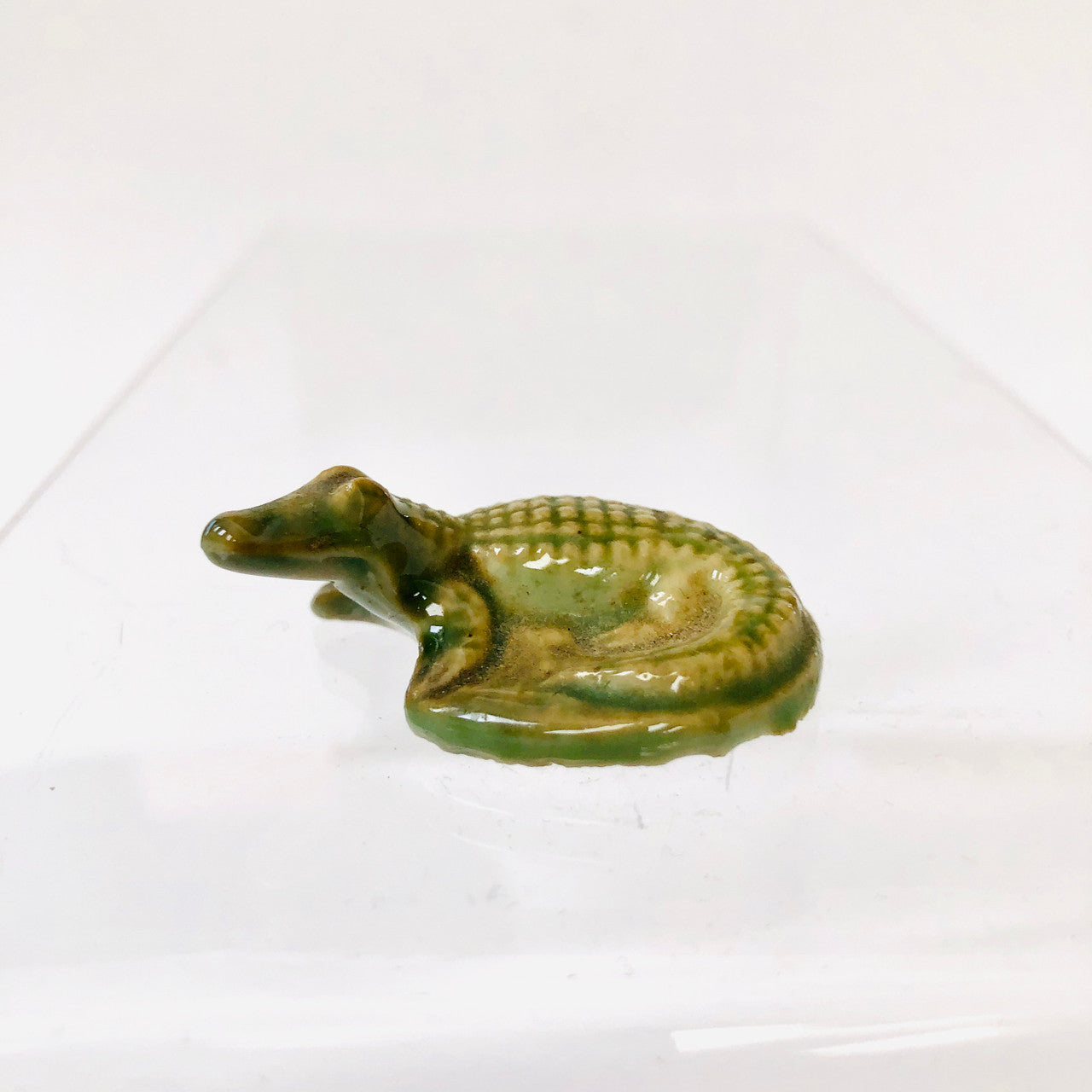 A lovely little ceramic Crocodile figurine, in a slightly curled up position, from WADE (England), originally manufactured as a promotional item for Red Rose Tea ("Only in Canada, you say...Pity!"), 1960s and 1970s.